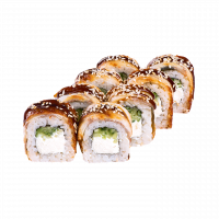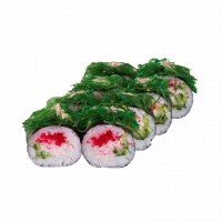Снежный краб, огурец, икра масаго, чука, соус Ореховый.